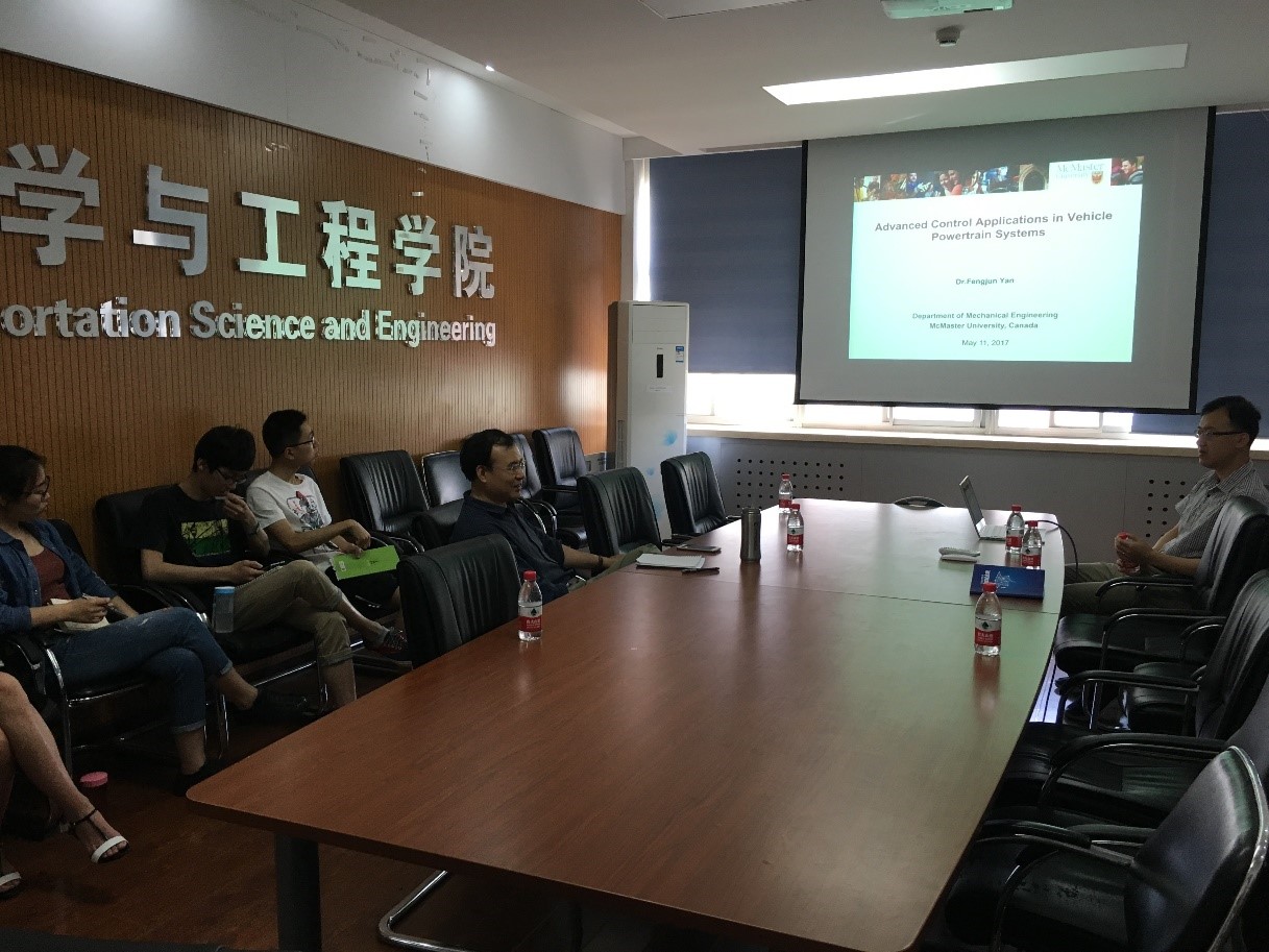 2017年5月12日和5月22日上午在红足1一世足球网官方网站红足1一世足球网官方网站501会议室,应北航红足1一世足球网官方网站刘献栋与张辉教授邀请,加拿大麦克马斯特大学闫凤军教授为我院师生做了题为“Advanced Control Applications in Vehicle Powertrain Systems”的主题系列讲座。