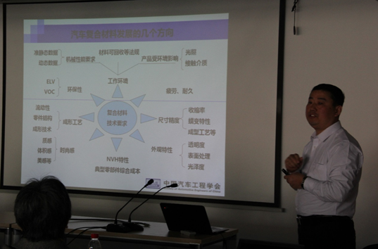 随后,杨洁部长以汽车的整个生命周期为背景,结合自己丰富的工程经验,重点讲述了我国中短期树脂基复合材料发展趋势和汽车企业零部件开发中对复合材料的要求,对复合材料的开发与工程应用提出了几点独到的建议。