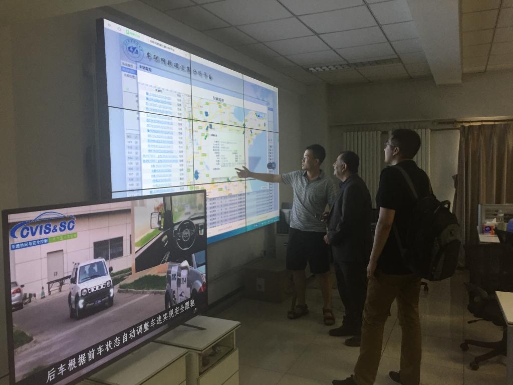 会后,Maziar Nekovee教授一行参观了我院的车路协同与安全控制北京市重点实验室,观看实验室自主研发的成套车路协同技术Demo系统和交通大数据平台,并就5G车联网及边缘计算技术进行了深入探讨和交流。